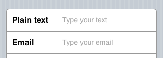 A row inside a fieldset is created using a DIV with the classname "row". You can have multiple of them and put whatever you want in it. Most common case is to use them for text of form elements. On the iOS theme, first & last child of a fieldset are given rounded corners.